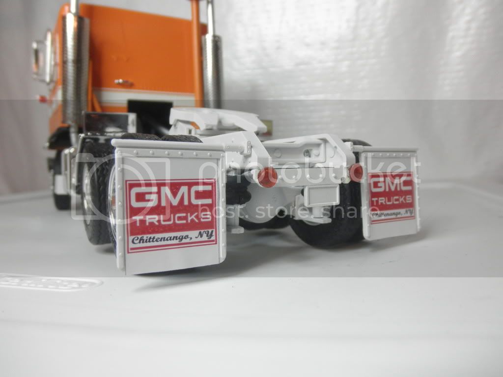 Ok, so now it's really done! Added some quarter fenders from the AMT GMC General & some custom "GMC Trucks" mud flaps.