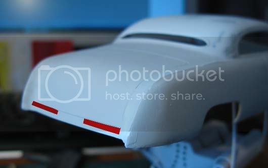 Biggest problem is what to do with the rear lights? Don't want to cut the fins. One of the ideas still cooking is making the rearlights like a strip following the lower edge of the bootlid. See picture. Please help my brain with the rear light problem!
