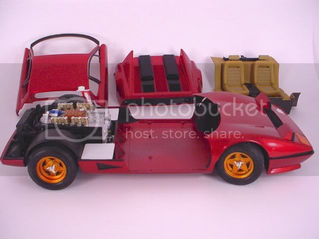 This is the Fujimi 1/16 scale Ferrari BB512..it's a motorized kit, shows how to light it as well and actualy has a decent engine in it despite the gearbox....not too bad. Fit isn't the greatest, but still.