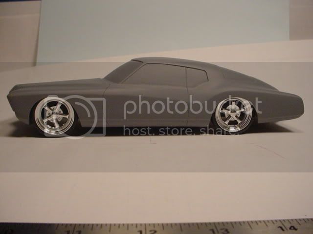 I just tossed another coat of primer on her before I leave for work...I'll take some pics later today...oh, the rims I have are roughly 24" in scale but I want mine siting much lower so I carved out the wheelwells.