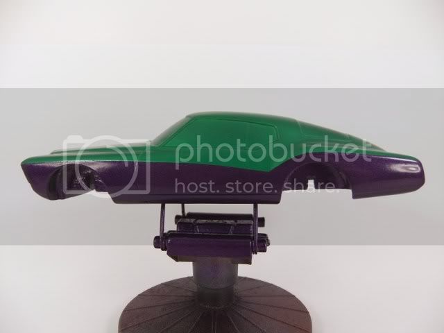This puppy has to get some paint...so I got a base coat of pearl green on the body and then did the sides up with a nice pearl purple, but it needs something else...thinking a pearl gold or hmmmm - pearl orange between the two colors....thoughts?!