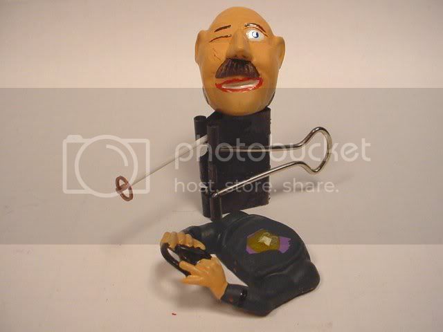 I wanted the figure to more readily look tha part, so off went the sunglasses. The monocle is in the clip. I'll need a tiny chain or something I think for that. I don't know if I like the lips...thoughts?