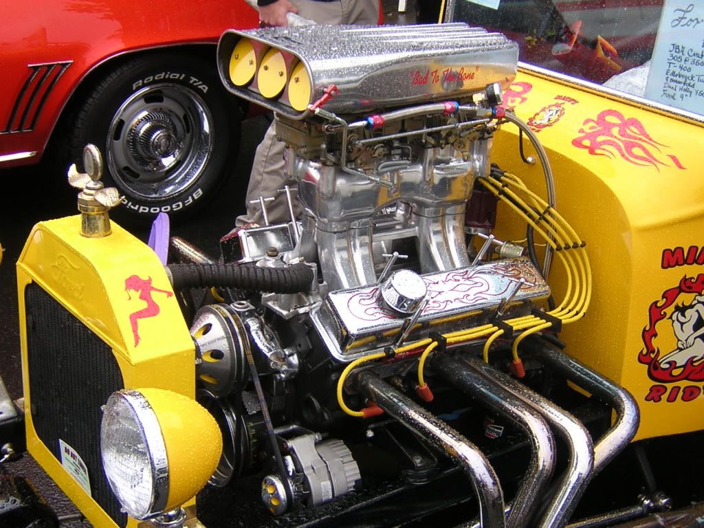 Sunday during the cruise, he was parked on a side street and folks were free to walk up and gawk. Monday during the car show, he was fenced off and they charged U$10 (for a charity) to have your picture taken with him.