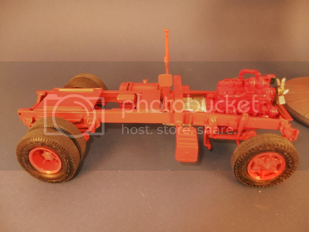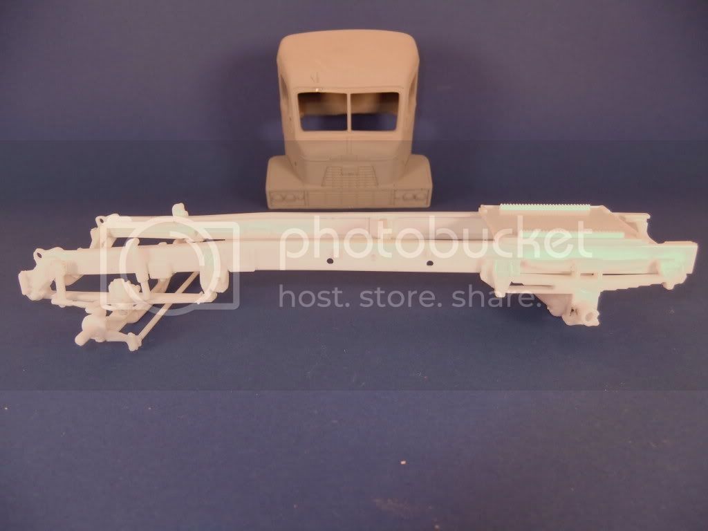 Here's the basic frame cut to size from a Mack R-685st donar kit. The single rear axle looks to be a single hendrickson from the ford straight boxvan kit.