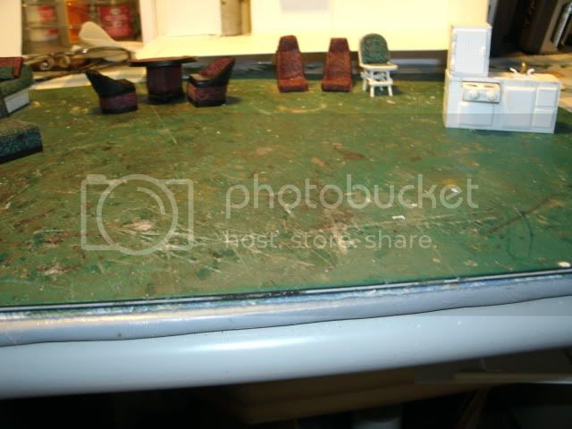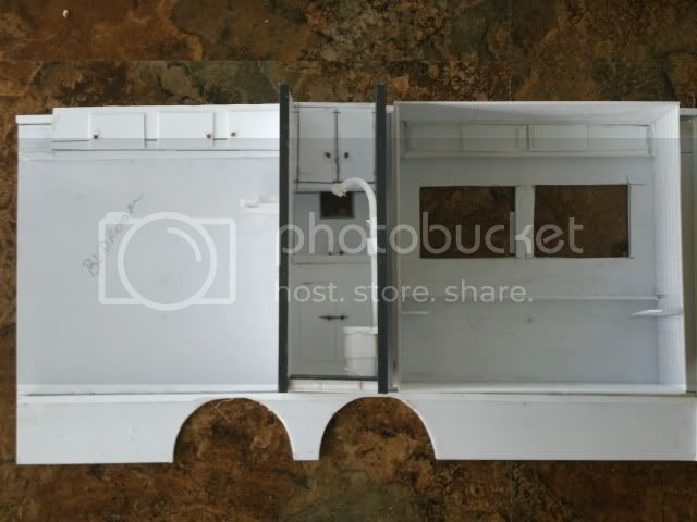 I am planning to use clear plastic to make the roof. I will still have the overhead roof racks and all. I got the bathroom and the slide out almost done.