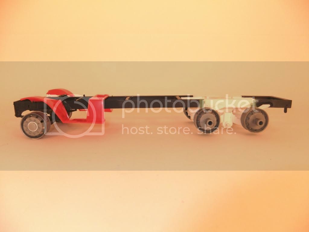 My intent from the beginning was to graft two kits together to make an AP tanker with trailer...the trailer base will be an italeri #766 canvas trailer with a tanker top. The problem was that the kit tanker body was too short for what I needed for either the truck or the trailer so some mods were in order. As per the pic here you'll see that both halves of the tanker{upper and lower} make a nice long tanker on the trailer kit - but I plan on it being a little shorter when done. Note in the 2nd pic the use of two hole rims back then with "balloon tires" as they called them.