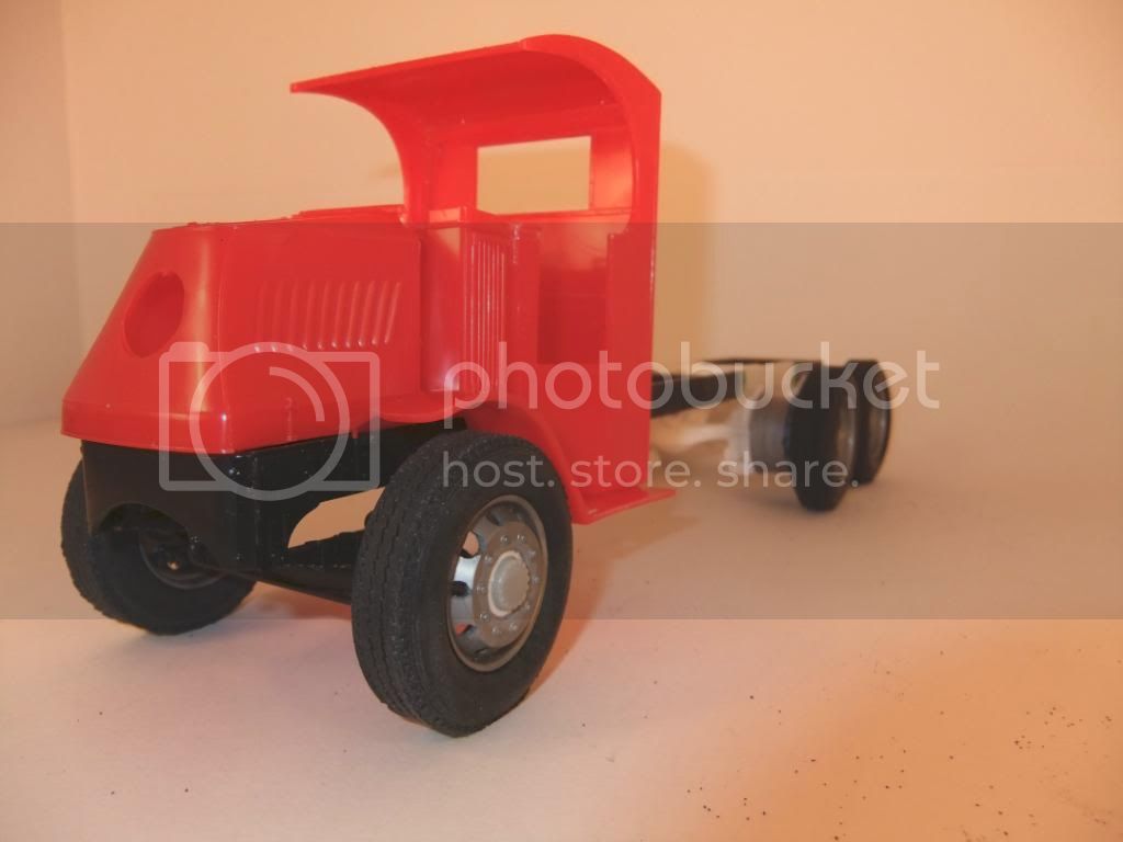 Here's a conoco truck and double trailer set up that I plan on copying by using just the tanker halves on top of a new body platform for both the truck and trailer. This is the enclosed cab with no doors. Options for this truck were the C cab type with no roof, C cab type with roof and with doors, and there was as shown the upgrade as I'll call it enclosed cab.