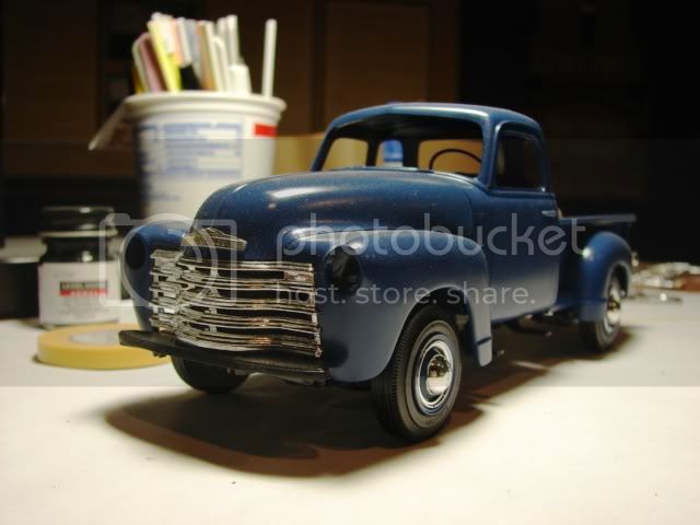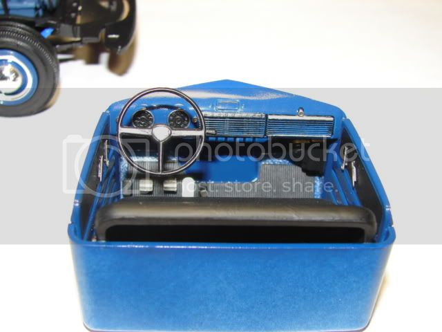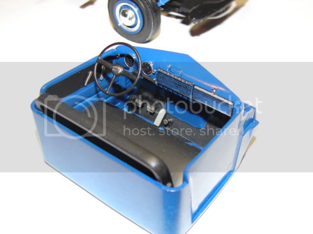 and Jim, as for my paints, the interior and also to be exterior is a custom color mixed for me at the car shop down the road. The black is Model Master Acrylic left flat in some places and coated with Future in others, and the craziest choice of paint is actually a Citadel acrylic called Space Wolves Grey! It was the closest match in my collection of paints to the Chevy engine blue I could find in my collection!