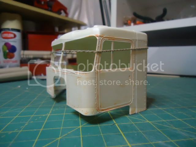 The last one is a AMT Kenworth K123 that I cut down to a 63" daycab. The plan is Yellow Freight; so it'll be Swamp Holly Orange with a single axle black frame. The cab will be "updated" to a 1974-ish, so the Cummins NTA370 will be Cummins Beige. Well, that's the plan, anyway.