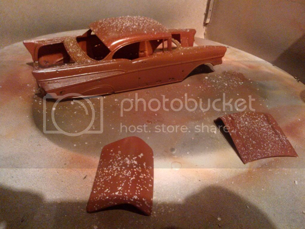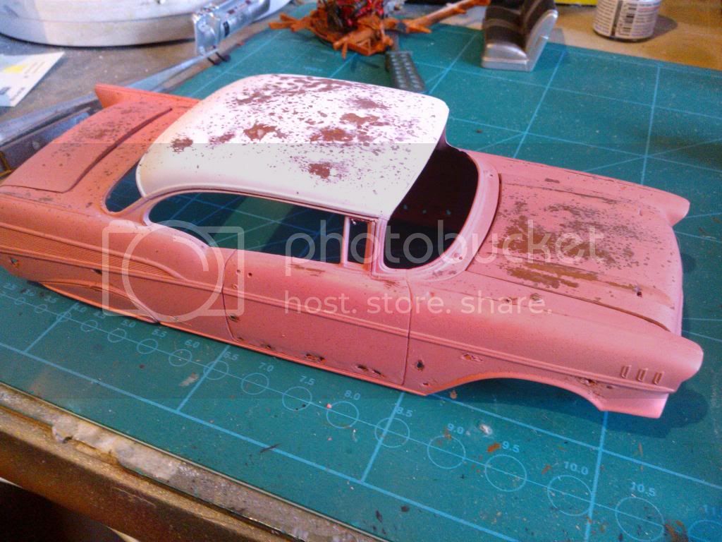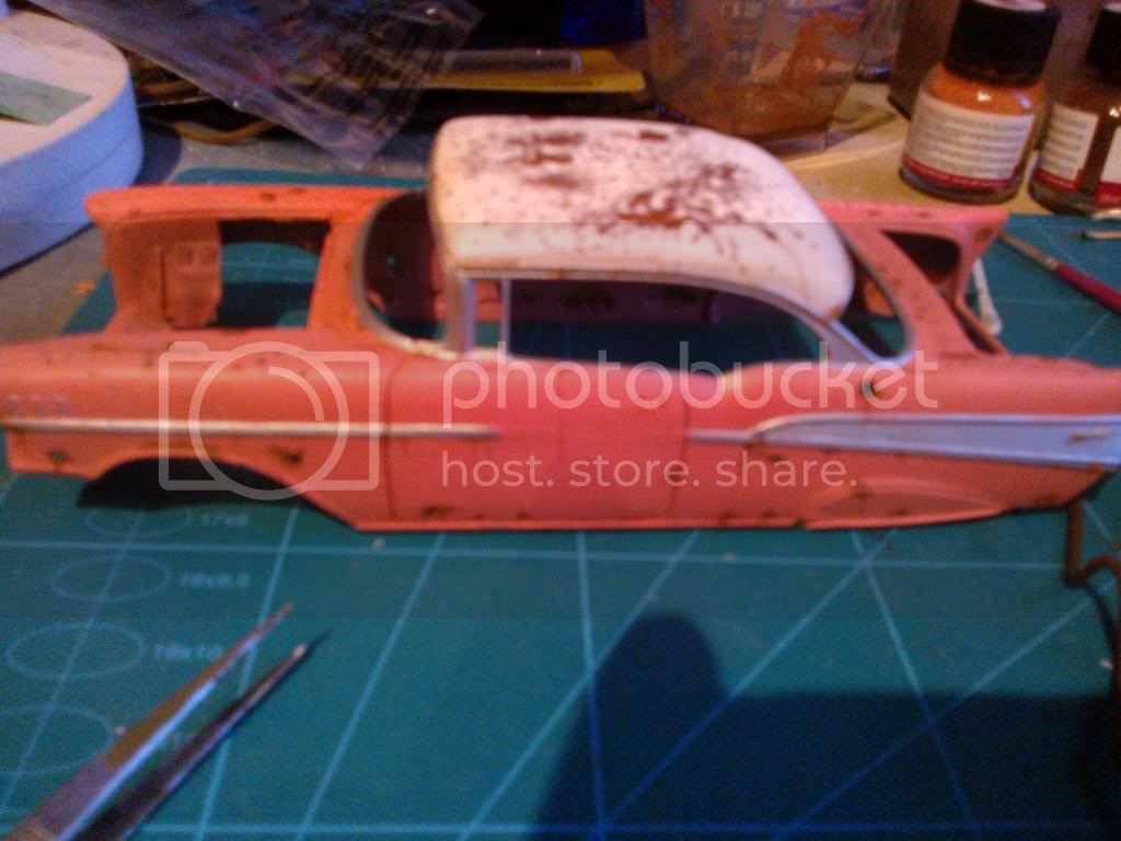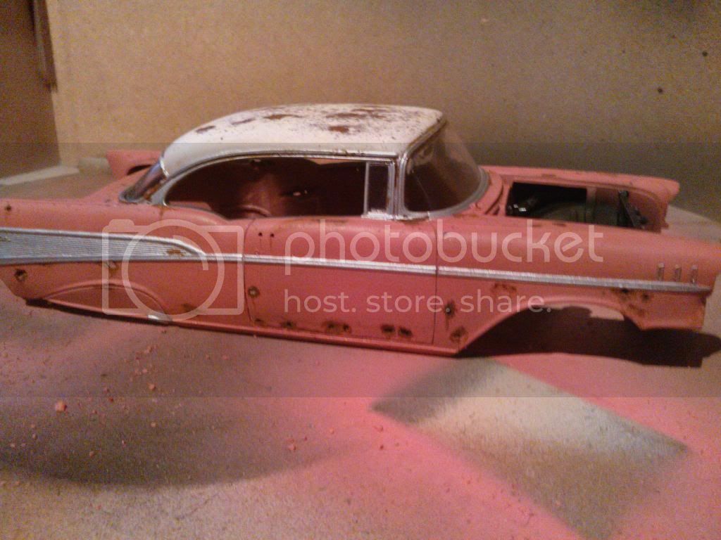 Thanks James.1st time i've attempted something like this, but have had a picture in mind. Trawled the net for Chevy 57s and got the picture I've shown. It's been a great build so far, really enjoyed it. I would recommend attempting a scrappy, it's a little nerve wrenching getting the grinder to the plastic, but once the build starts you don't feel so bad. My only concern is I didn't use enough hairspray, it could have looked a little more chipped, but not unhappy with it so far.