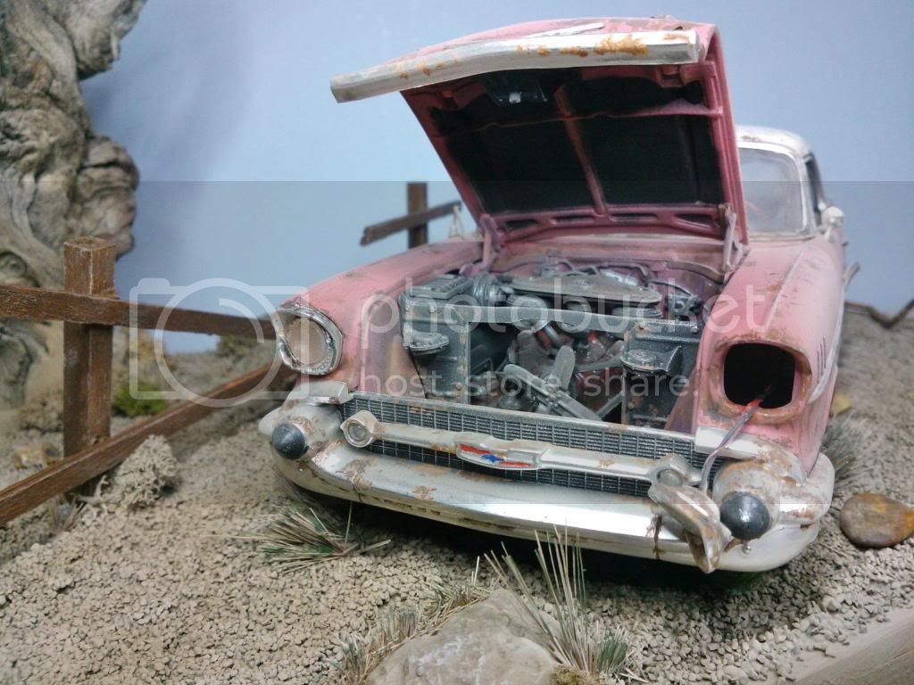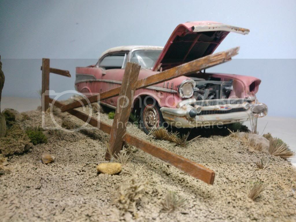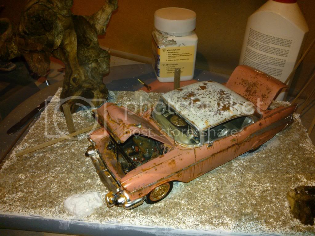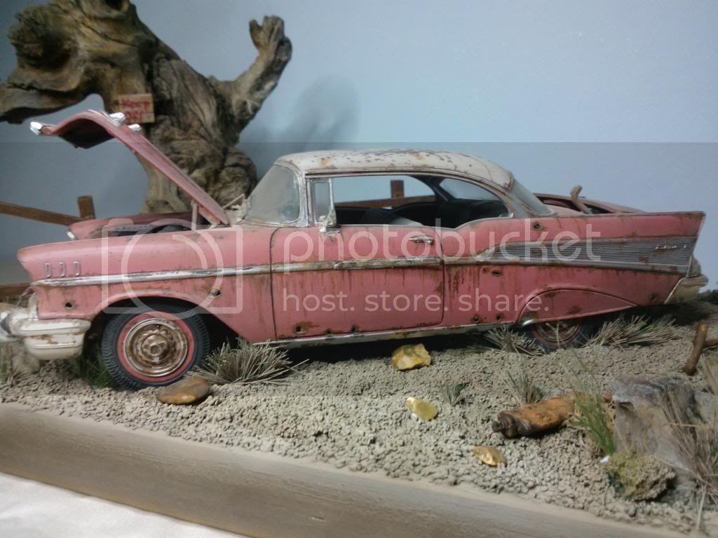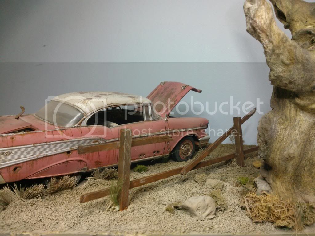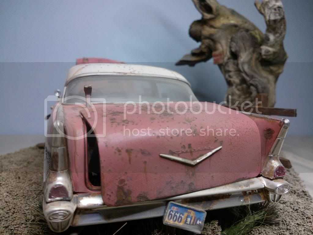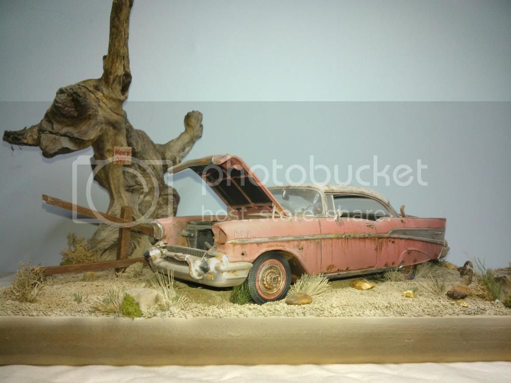 This the base as of today,painted up, but still needs weathering, gras added but more to come, and tree screwed to base. I closed the lid on the car so its just open a little, it looked too uniform. Will paint the grass over next couple of days and add car to base. A few little extras to add to base an it will be done.