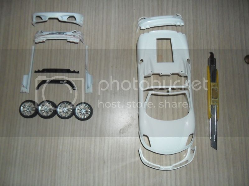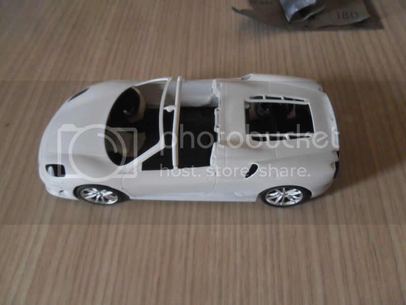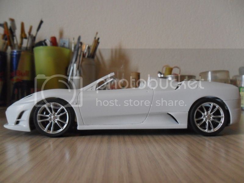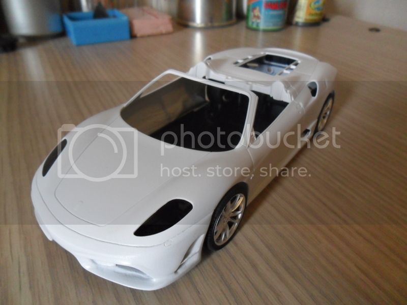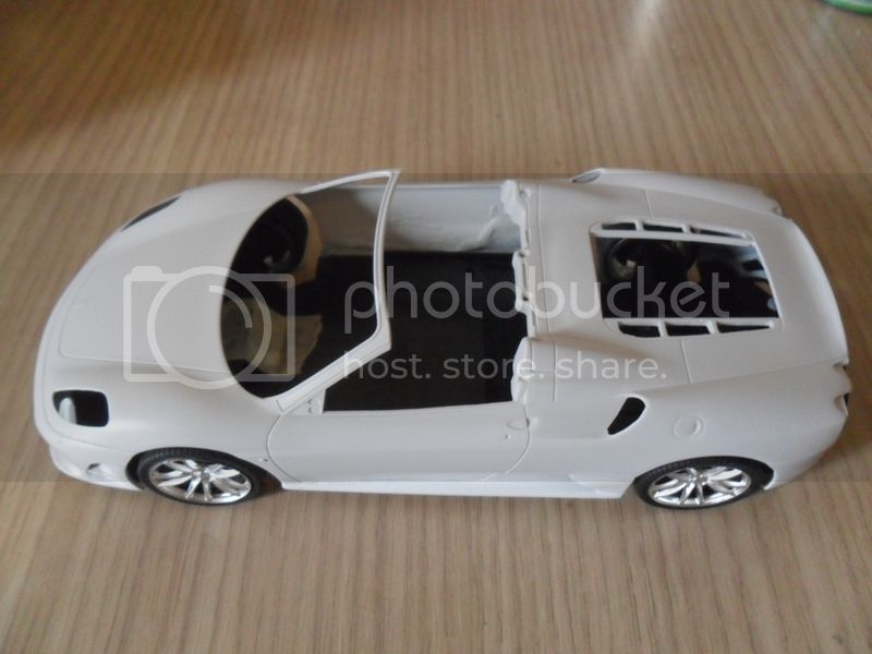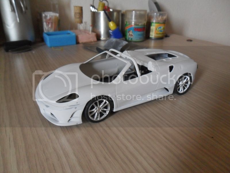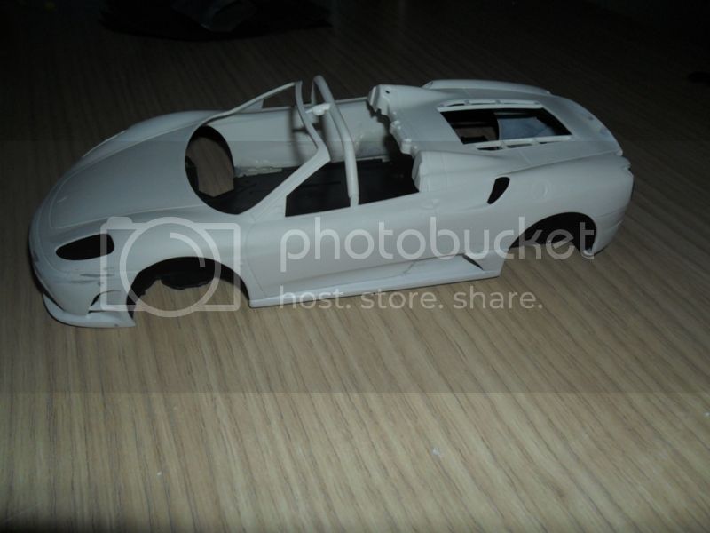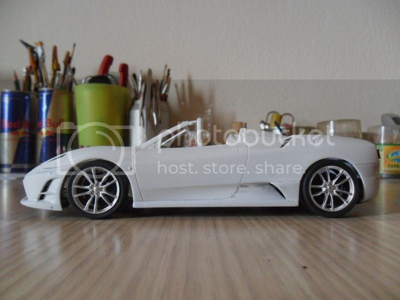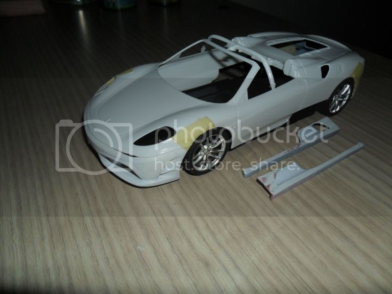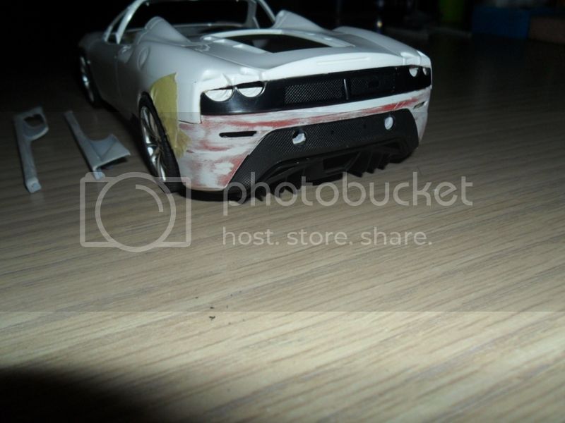 I will try to make a Spider vesion of this F430 Ferrari,i dont use a name 16 M becouse isnt, its just a F430 Spider with Scuderia body kit,and I also see the picture of  set for tune up to Scuderia version but is to much expensive  for me.So I use a old demage body Scuderia wich I cut the bumbers and side vents,and put on Spider body wich  I also cut a bumber,so far now they look like on picture.Its just "hard test fit" .This car kit is missing in my F430 collection .