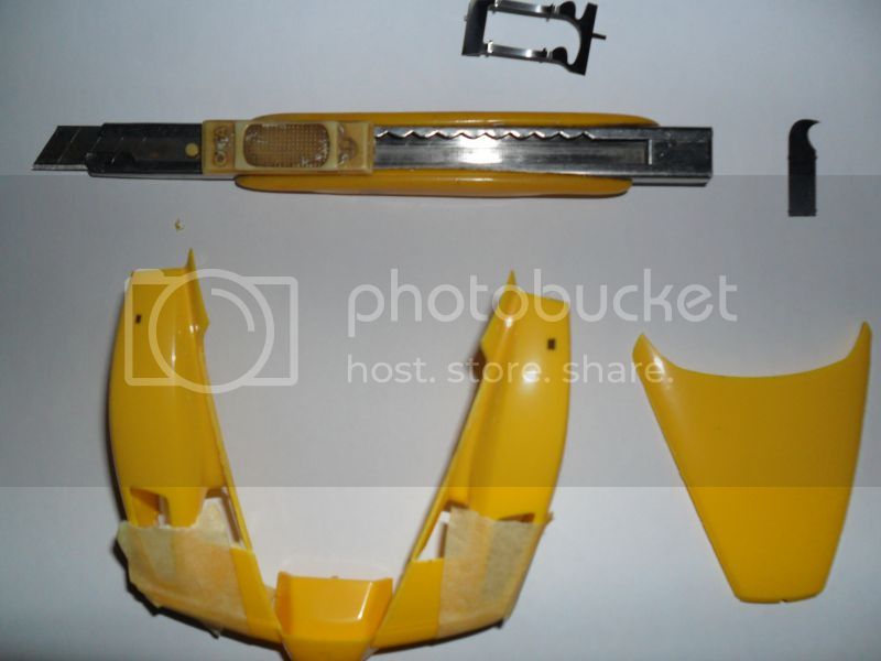 Fresh start with this model of Ferrari,for first step I cut the hood with this improvization scalpel and metal scriber,two tools in one (tips of day ),and here is the few fotos of this w.i.p.