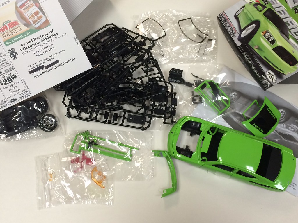 ...and I'm kicking off my build. First the 2007 Charger. I don't get a newspaper delivered, but I get pizza coupons-- to show this is March.