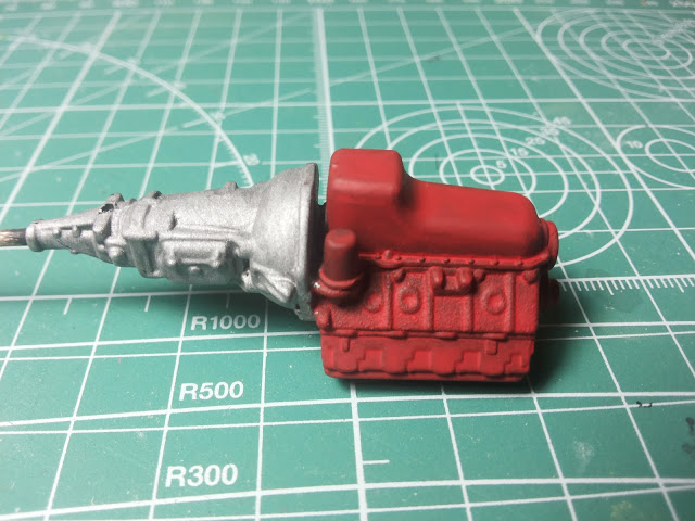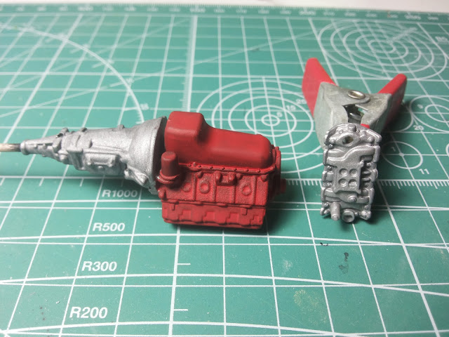 Well it may be progress, but it ain't much. Most of the large parts are painted, got the front suspension started, engine started. gott to get to some detail painting.