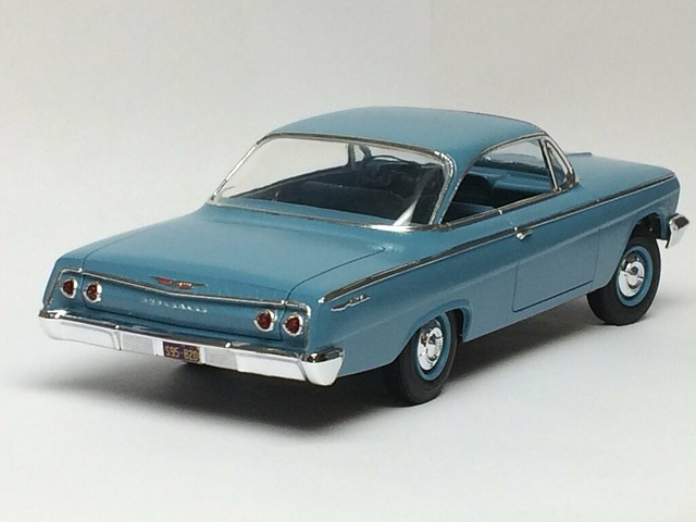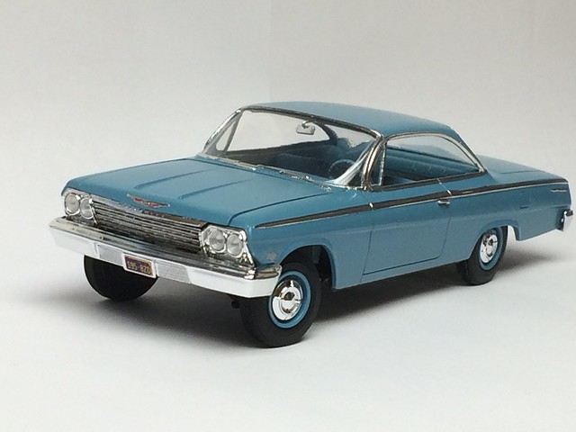 After doubting the gaudy amount of chrome and looking again at prototype Chevy pics, I decided the hood ridges didn't have chrome. The gleam in the photos is just paint. It was easy enough to pull off the BMF with a toothpick and tweezers, so here are the final final pics.