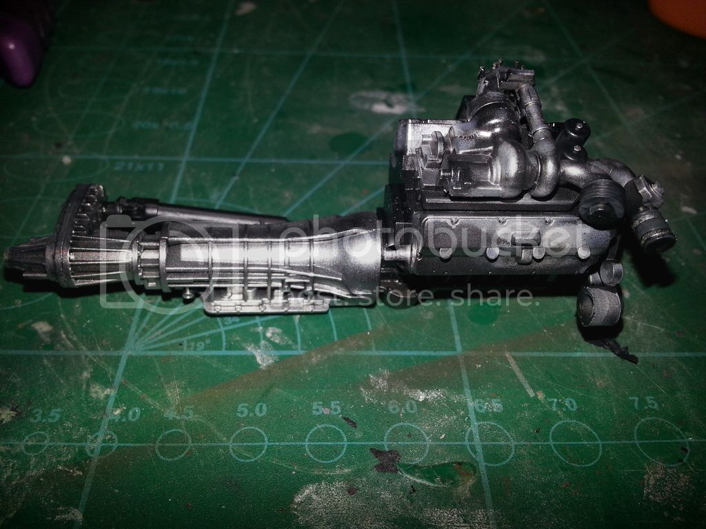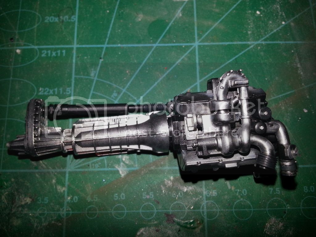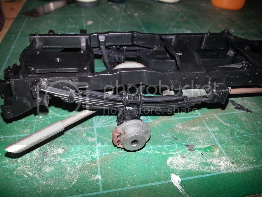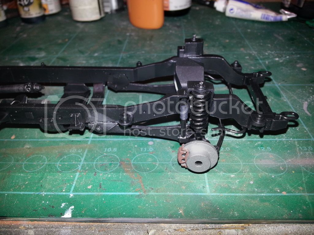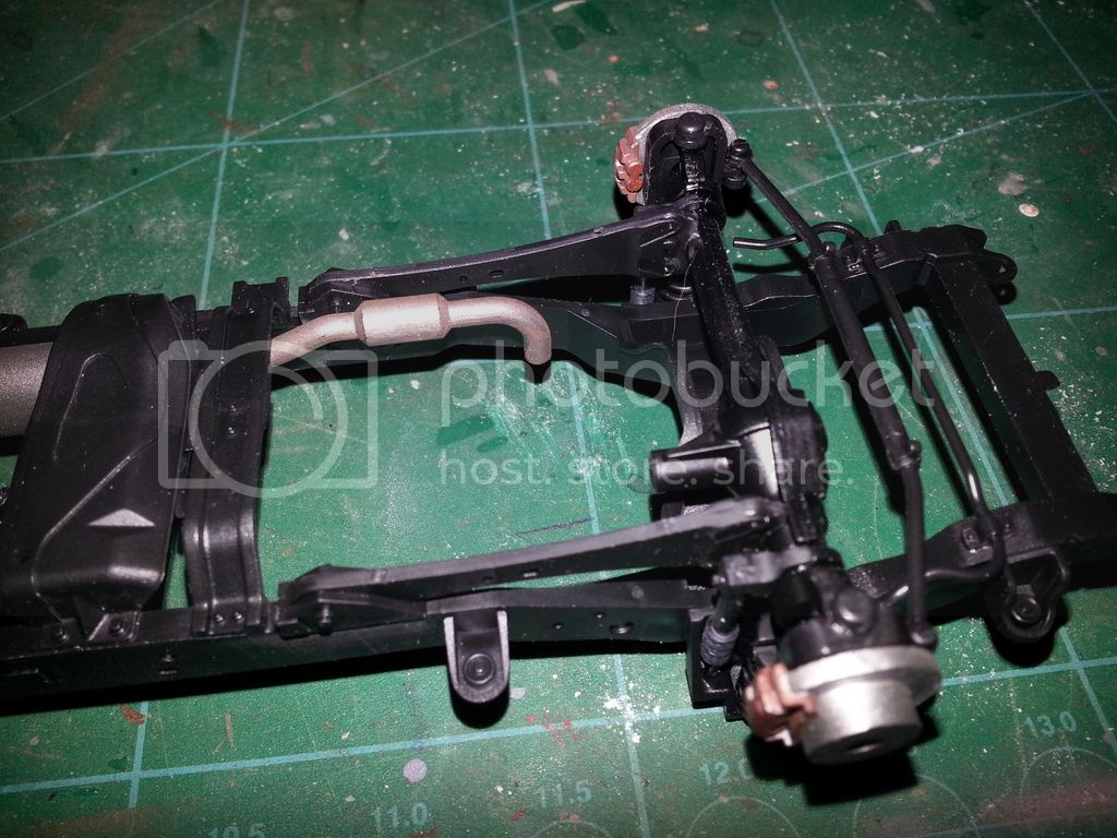 Now countinue with the interior which is ready and mounted to the frame. For tail lights I choose 3-color glass-protection. The front grill is ready too: