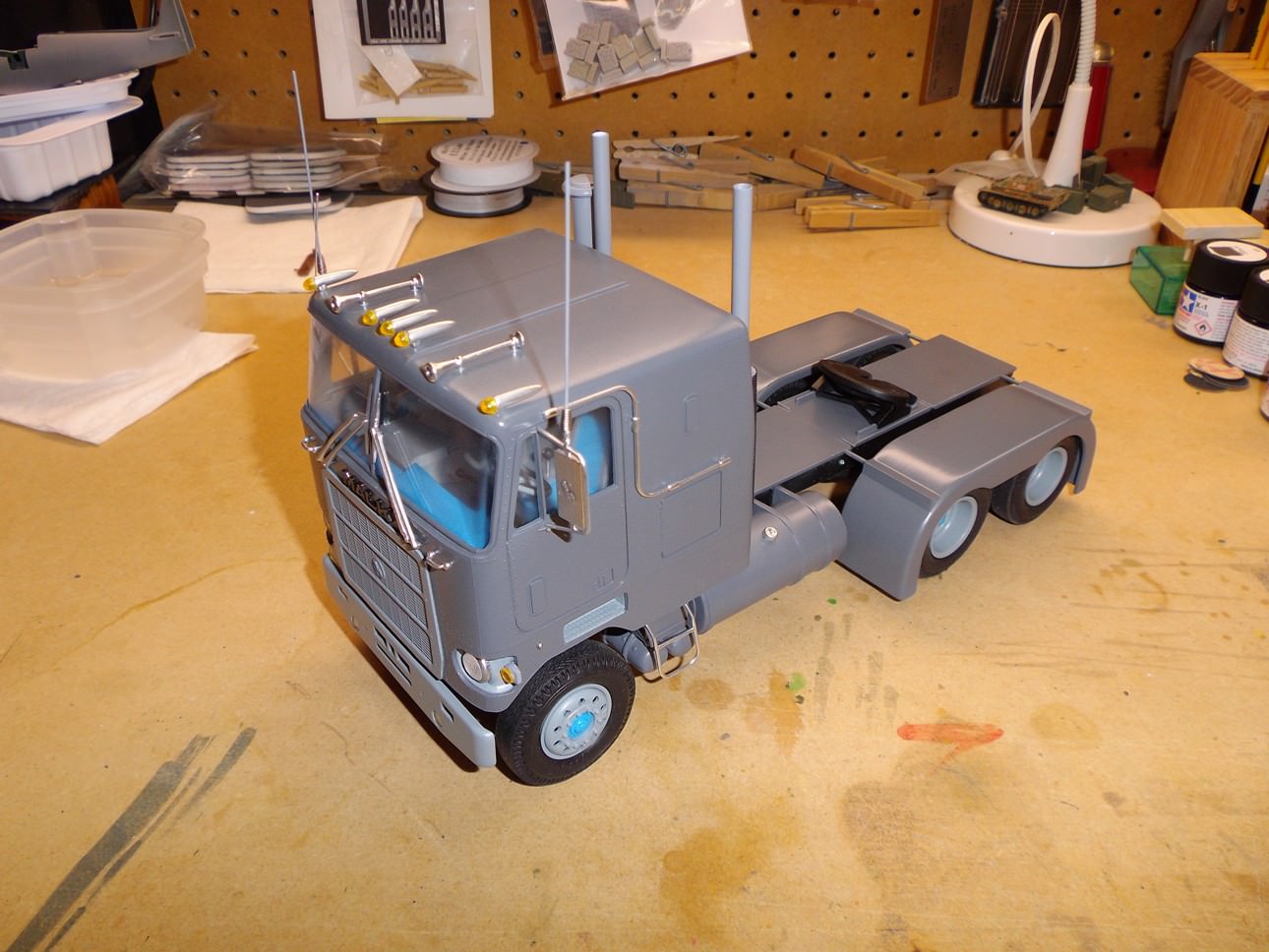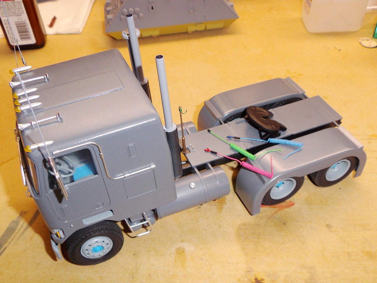 UPDATEThe cab primed with MM gray, then undercoated with white as preparation for orange: