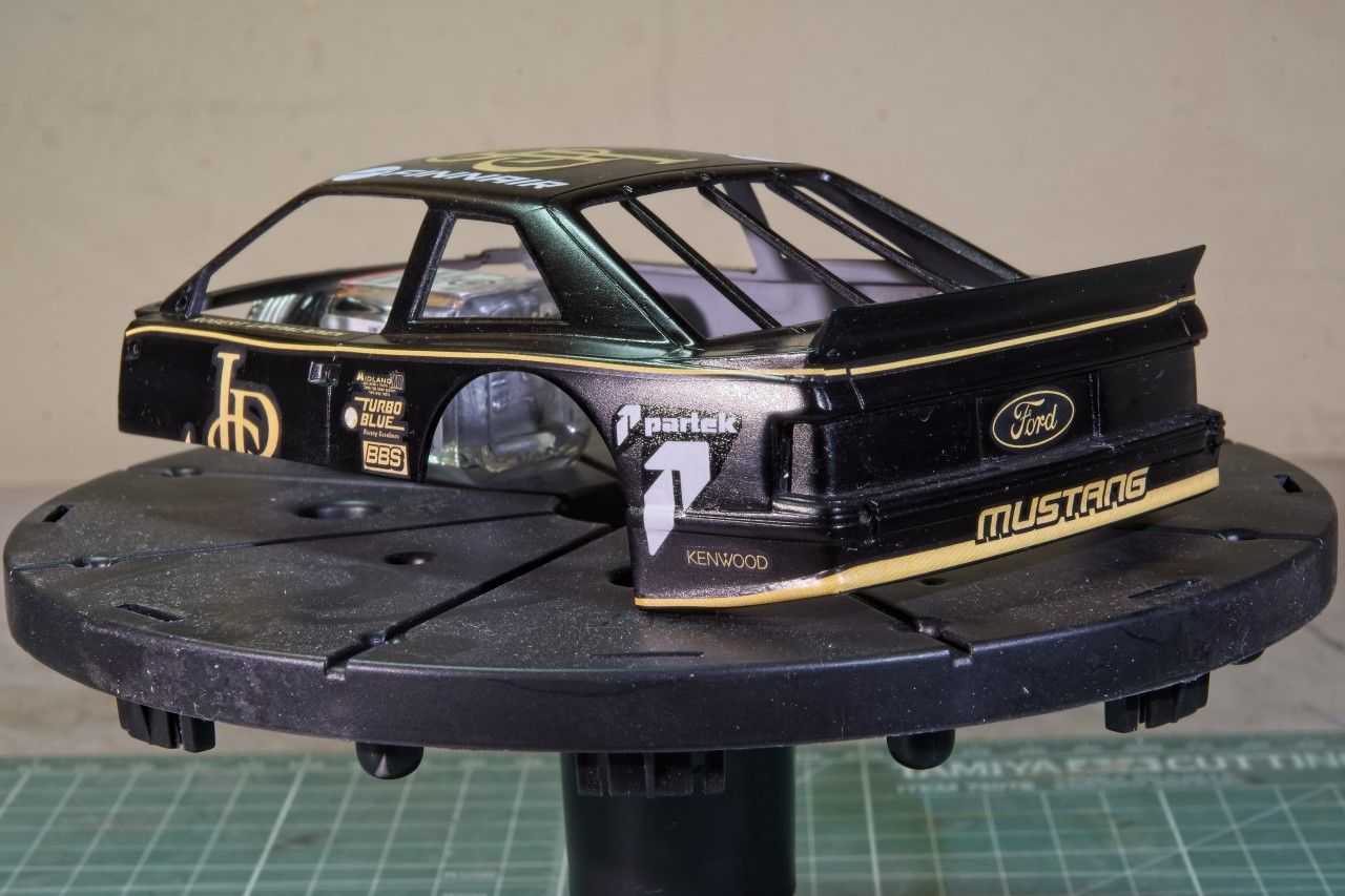 Back in the early 1990's Revell molded the 1986-1989 Roush Mustang, that was driven in both the IMSA GTO series as well as the SCCA Trans AM series with different drivers for different sponsored cars. This kit started out as the Black JPS Mustang, but I decided that I wanted to do the Folger's IMSA GTO sponsored car. Bill Elliot and Ricky Rudd drove this Roush Ford Mustang to a 5th place finish at the 1986 12-Hours of Sebring. What makes this even more interesting is that both drivers are Nascar stock drivers, and were excellent road racing drivers as well who dominated the then 2 road races per season.
