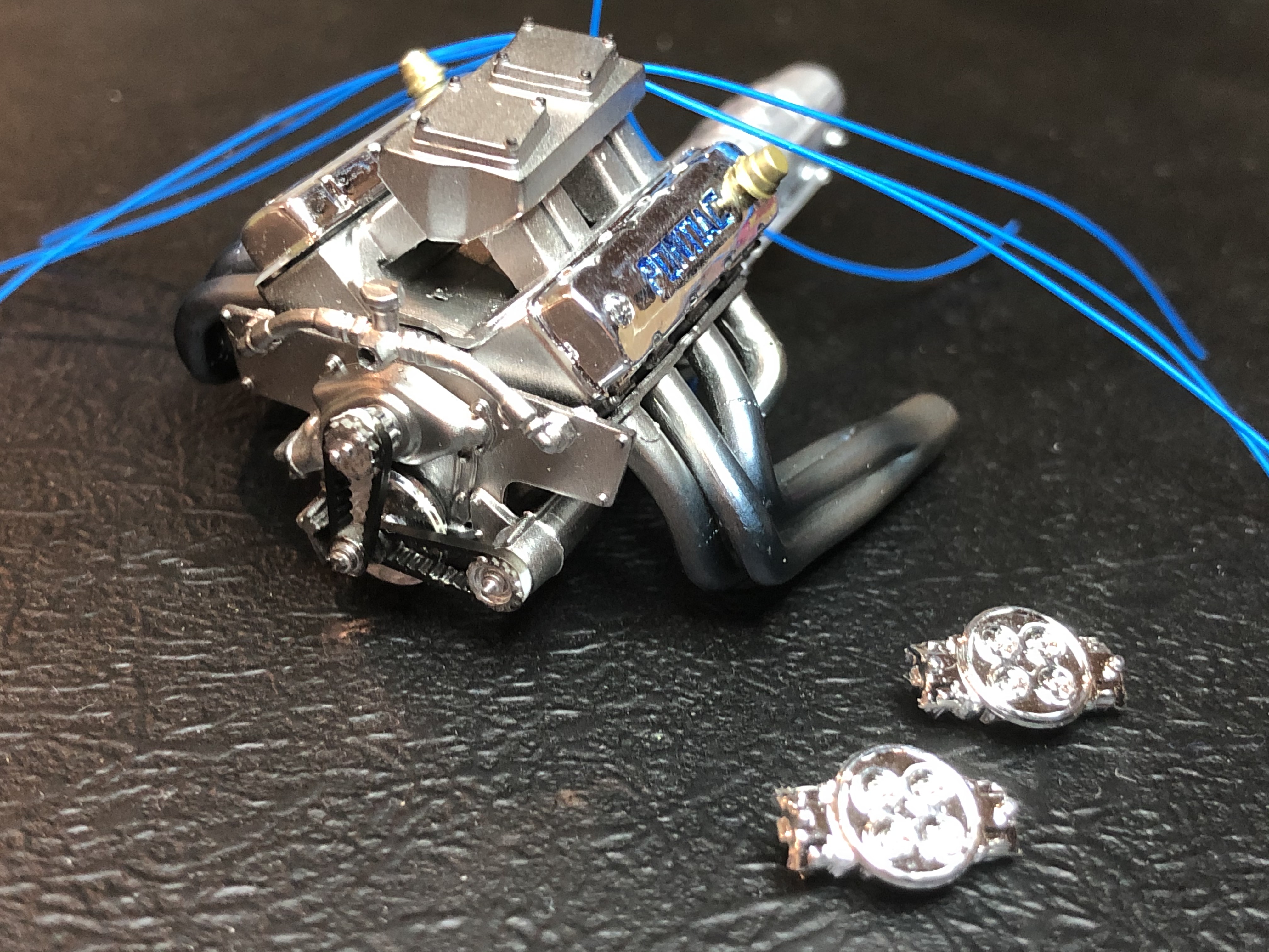 EDIT - Once again, a few touch-ups to do looking at the last image, the gold breathers lost paint from handling, and the belts and pulleys look a bit sloppy!