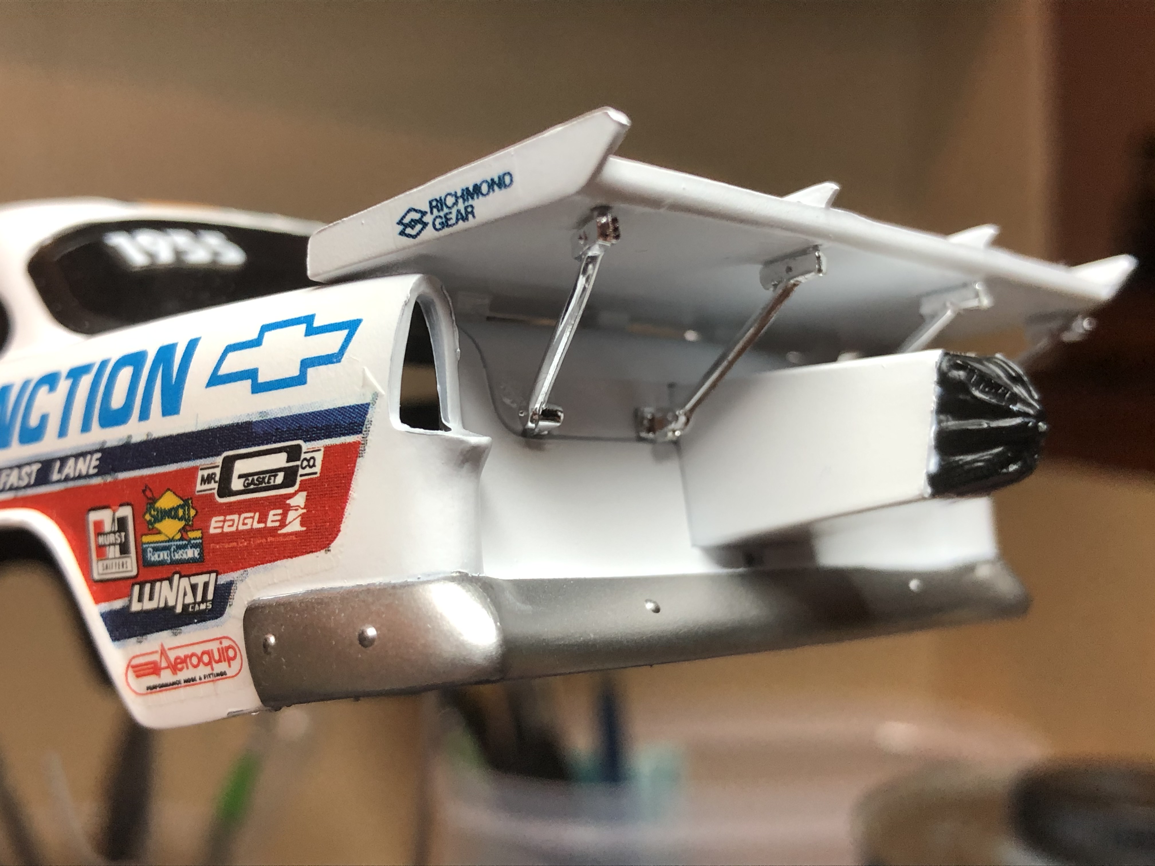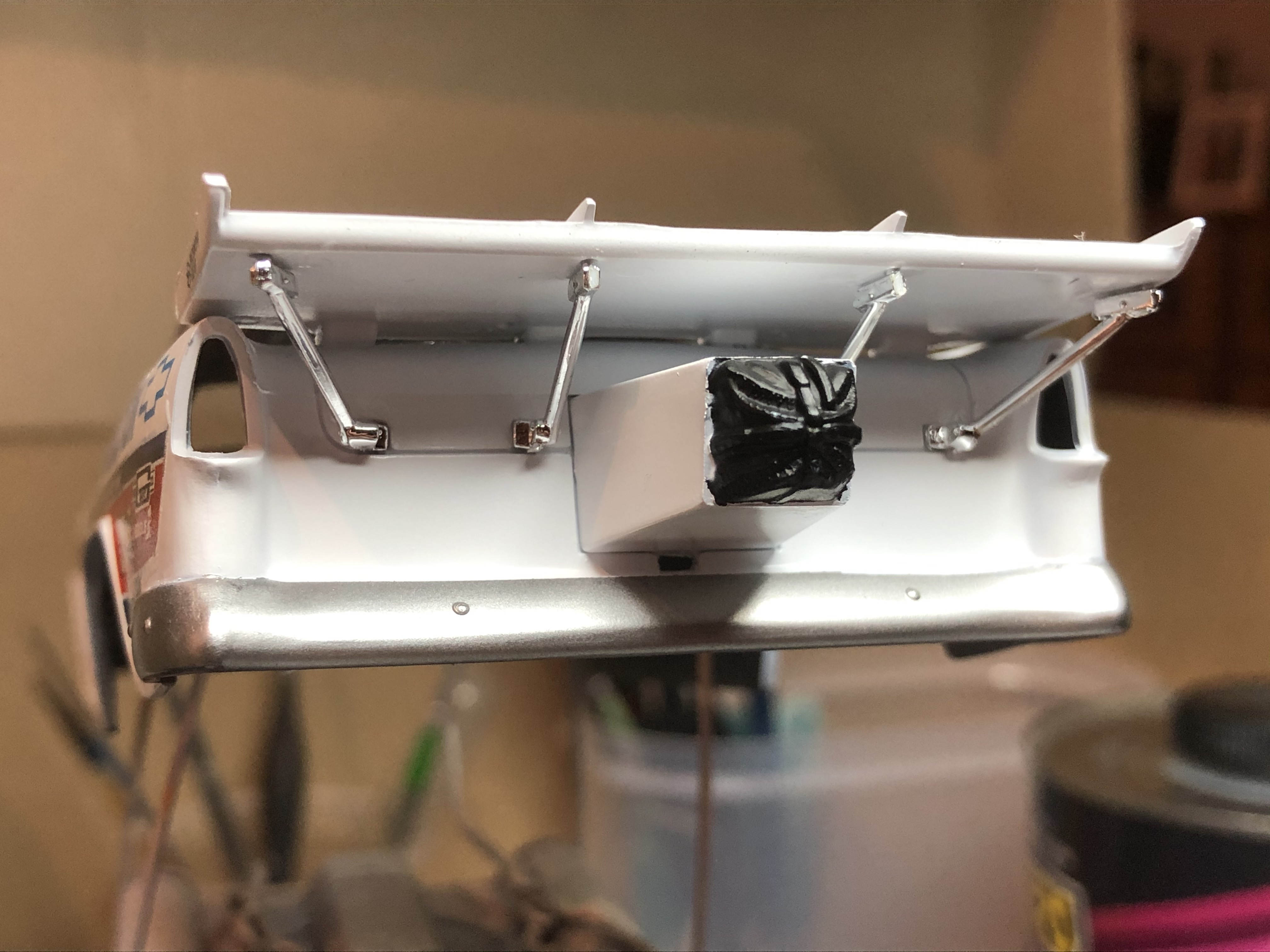First up I fitted off the drag chute pack and rear spoiler support struts.