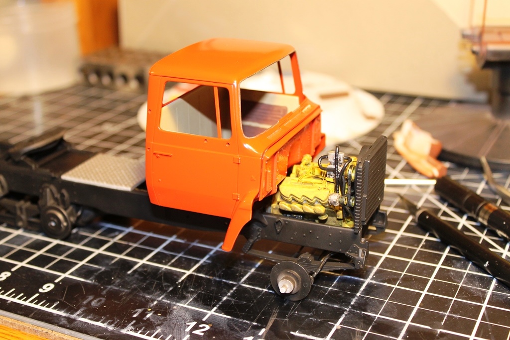 Nice work on the engine, the yellow over black primer is a good deep shade. I just noticed the "sawtooth" rocker covers. They would look great on a hot rod V8!